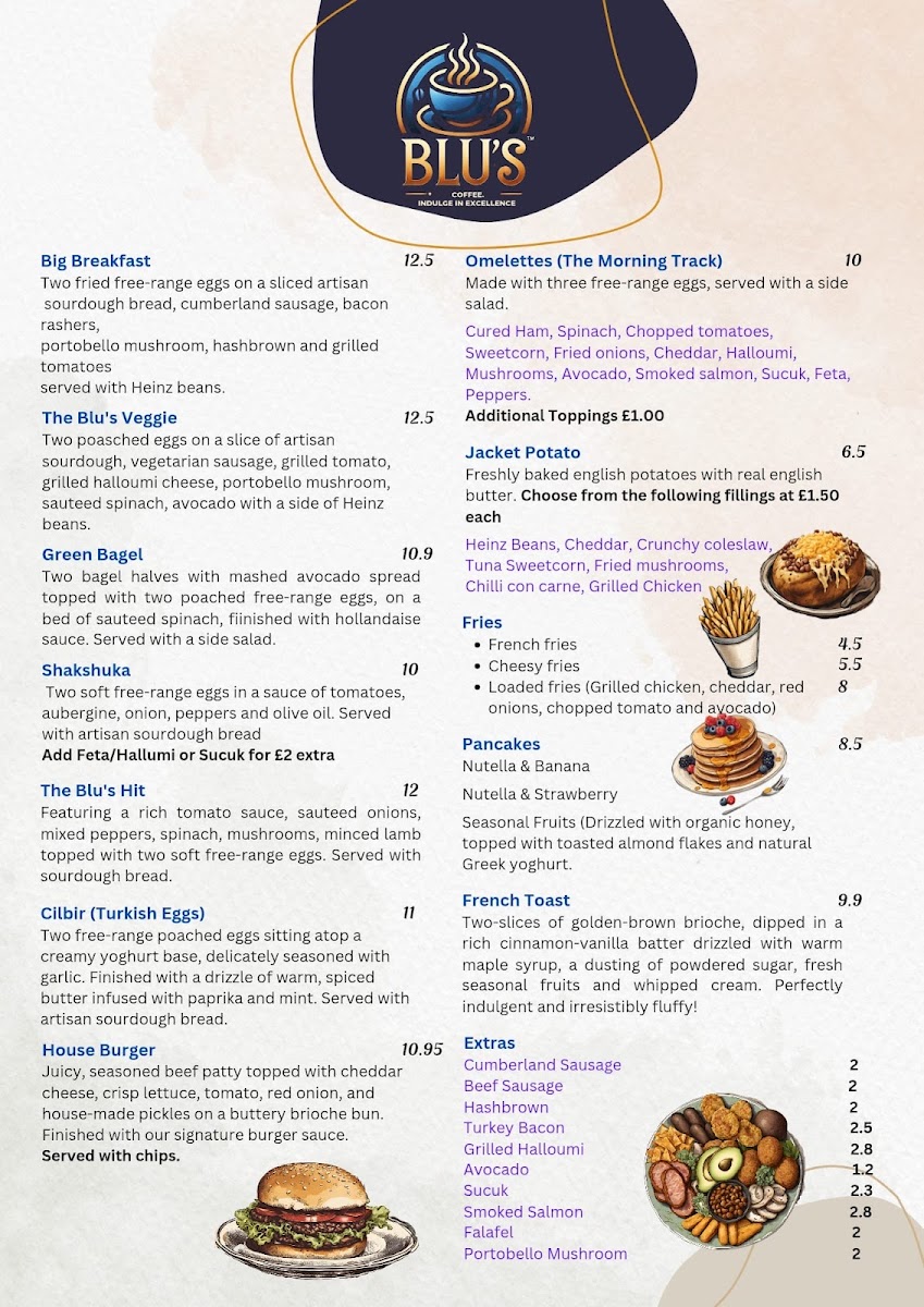 Welcome to Blu’s Coffee, a delightful café nestled at 513G Hornsey Rd, London. Known for its vibrant atmosphere and exceptional customer service, this spot has rapidly become a local favorite. The menu boasts a tempting variety of wraps, sandwiches, and salads, all made fresh to order. Patrons rave about the generous portion sizes and fair prices, making it an ideal choice for a satisfying meal.
